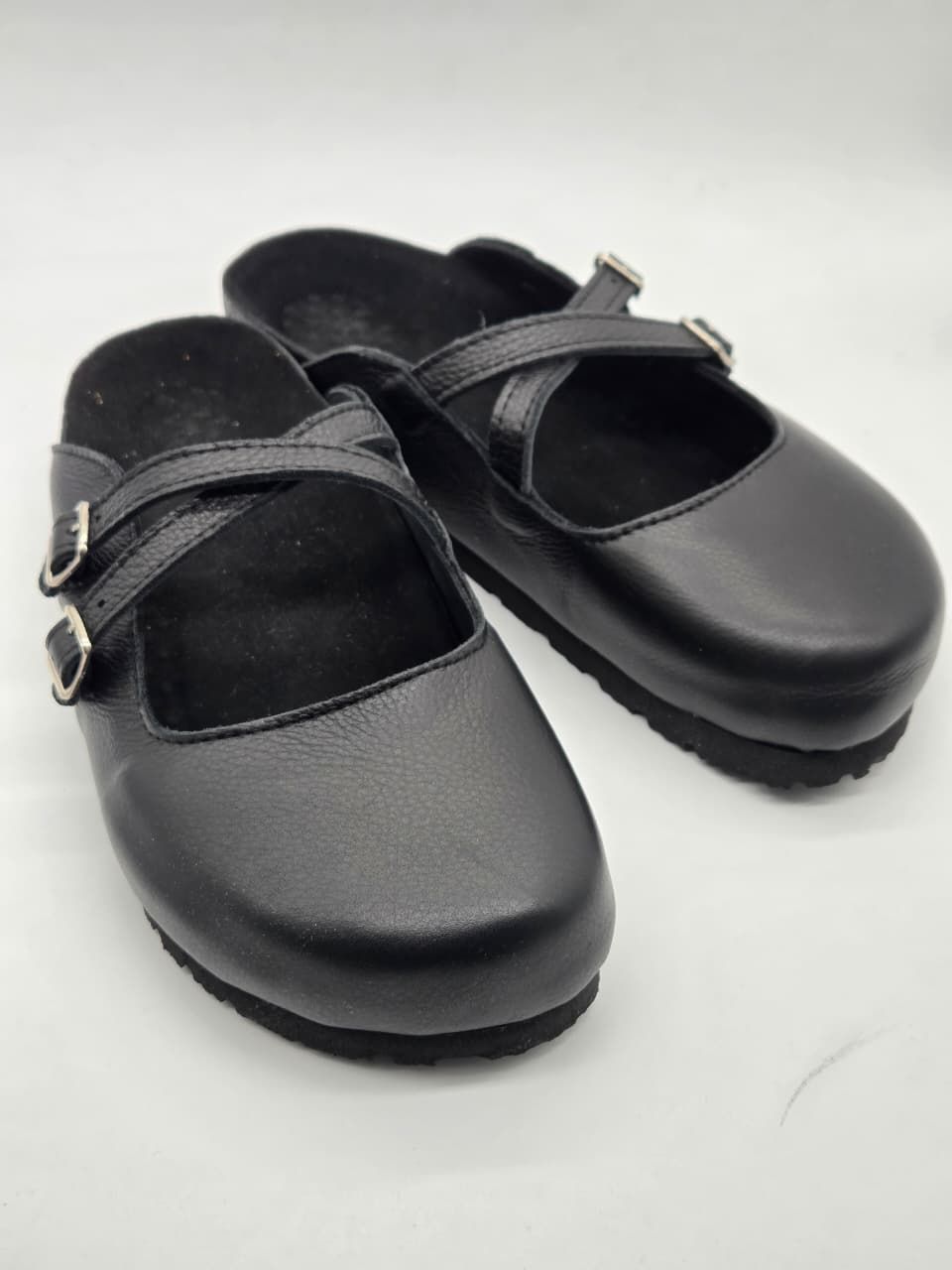 • 2 tiras regulables con hebilla de fundición en baño niquelado