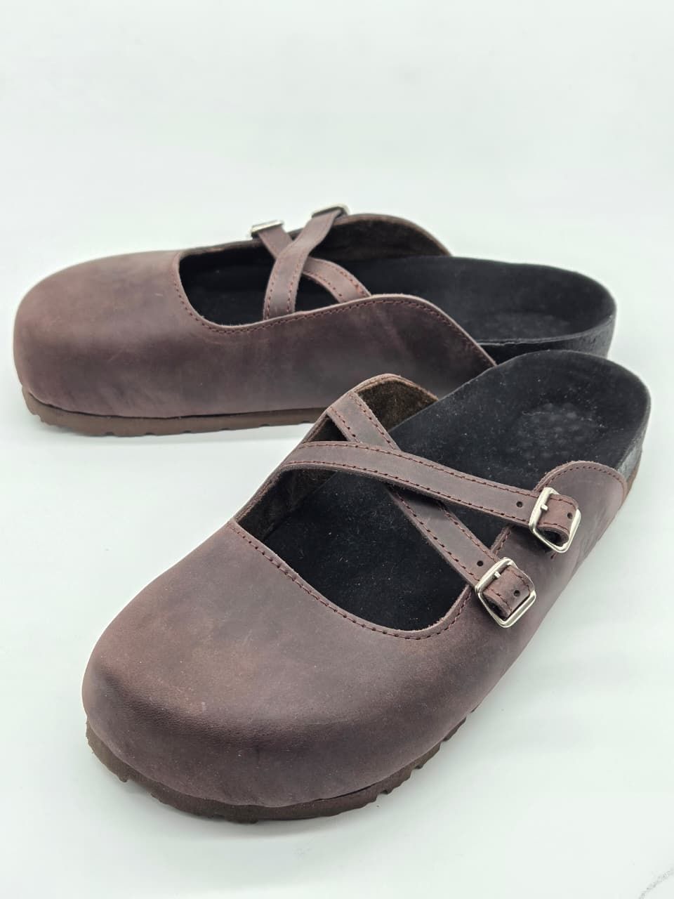 • 2 tiras regulables con hebilla de fundición en baño niquelado